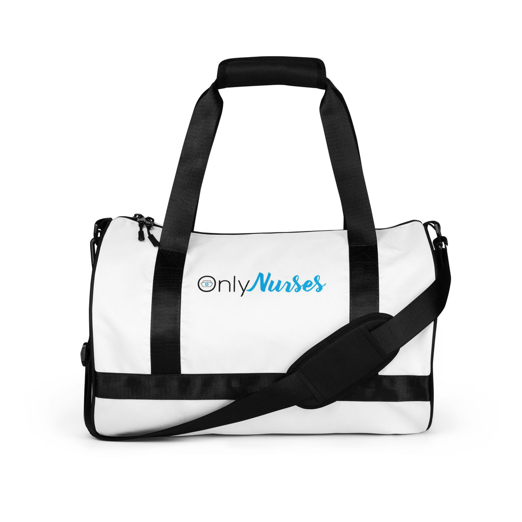 Ready to get your fitness on? Add some punch to pumping iron with this all-over print gym bag. Made from 100% polyester and sturdy, water-resistant fabric, this bag is fun meets function. And it’s got pockets!